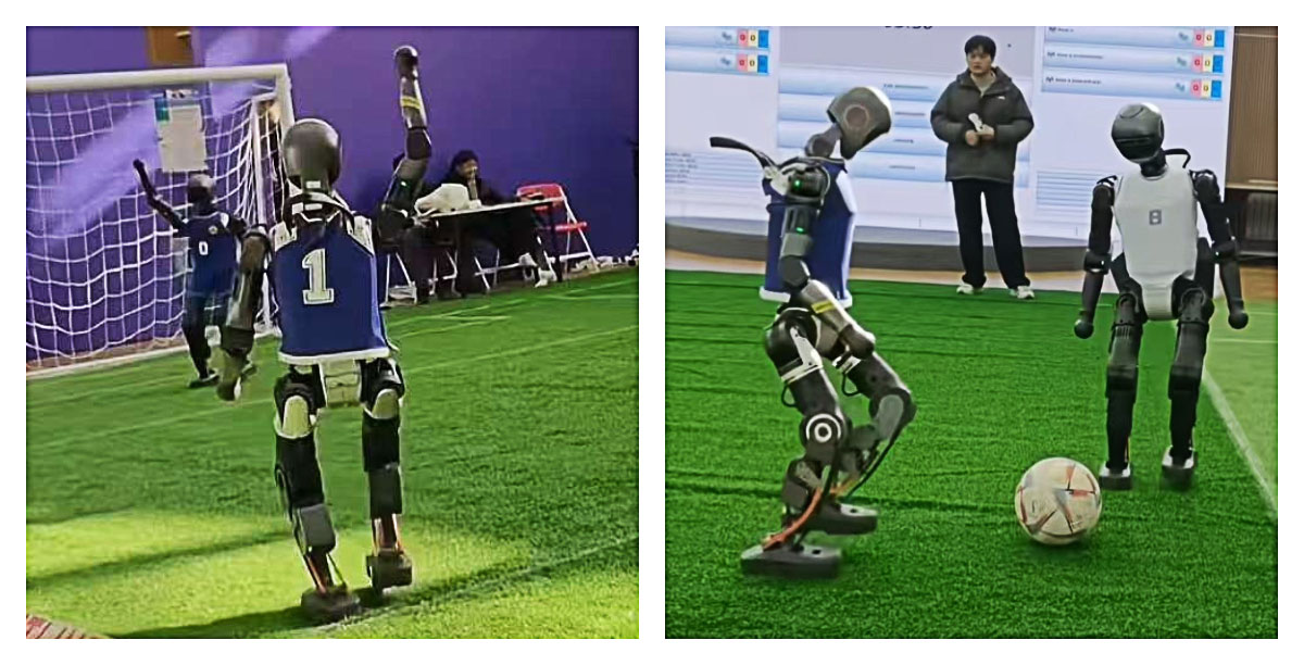 足球场绝非一成不变的舞台,它充满了各种复杂且动态变化的因素,而智能体却能在这样的环境中展现出强大的适应能力。无论是烈日炎炎下场地的干燥与坚硬,还是细雨纷飞时场地的湿滑与泥泞,亦或是对手层出不穷的新战术、队友偶尔的意外举动,智能体都能迅速做出调整。当前,智能体还存在很多运动控制和决策能力的不足,导致一个褶皱的路面就可以把机器人绊倒。但是,我们有理由相信未来智能体会朝着具备更强大的通用智能,实现多场景深度融合、自主进化学习,且与人类高度协同共生,同时兼顾安全可靠与伦理合规的方向发展。